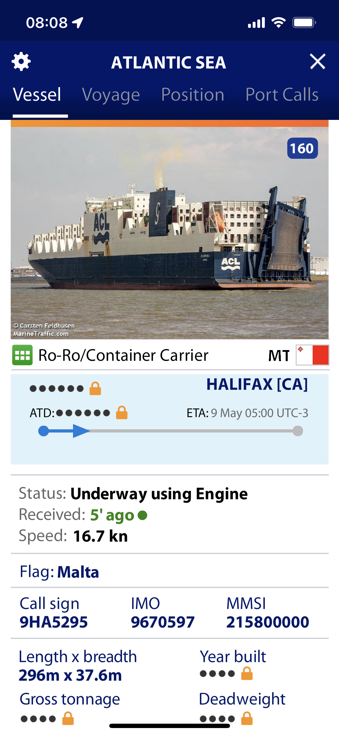 und am dritten Tag kommt die ersehnte Nachricht: Das Schiff mit unserem Unimog wird am Montag, 9. Mai in Halifax ankommen, wir können das