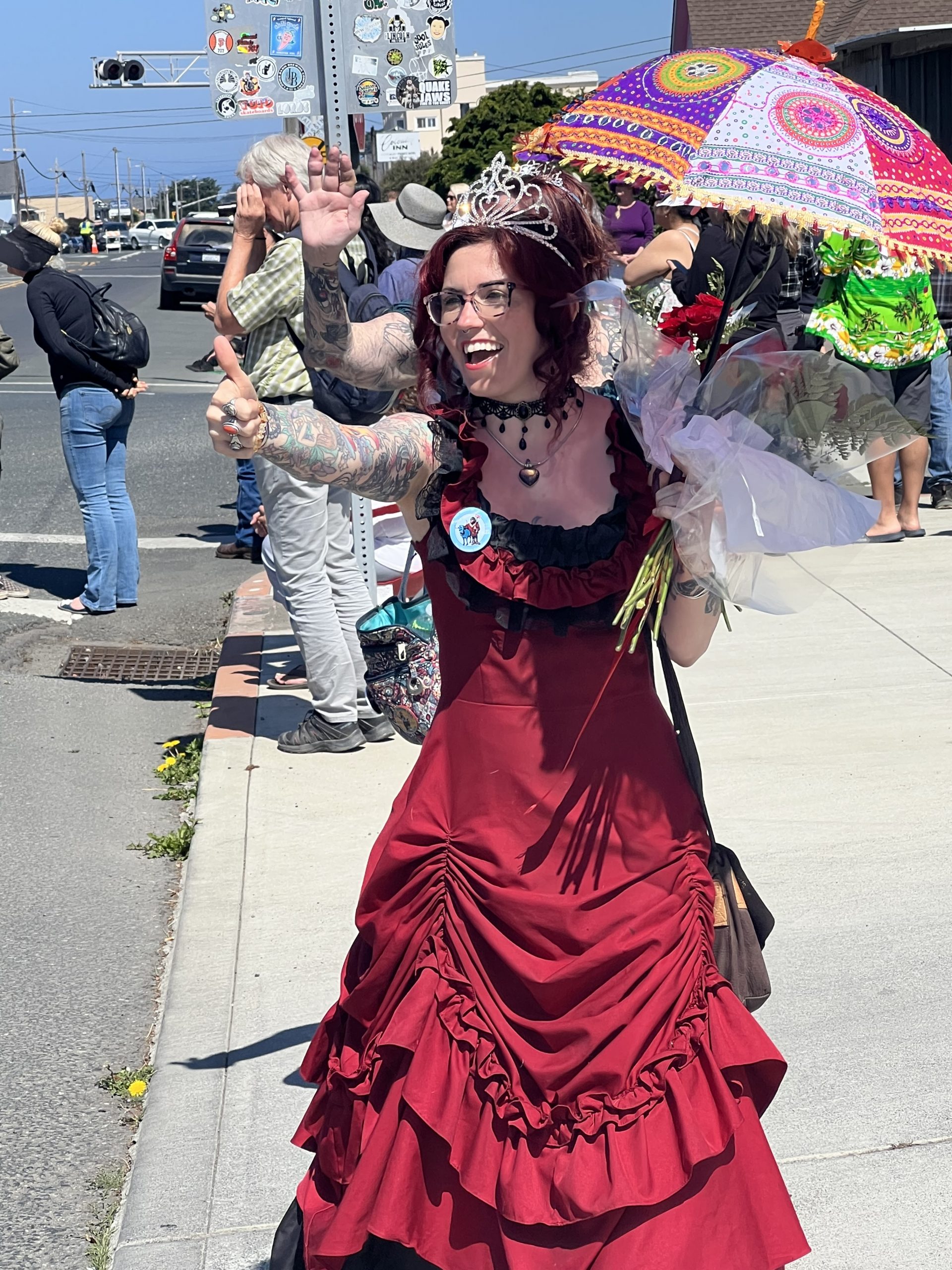 los ist und stoße auf die Ankündigung einer Parade im Städtchen Fort Bragg, das genau auf unserem Weg liegt. Wir sind schon fast eine Stunde vor dem angekündigten Beginn der Parade dort, die ganze Kleinstadt scheint bereits auf den Beinen zu sein, manche sind in Kostümen unterwegs, andere richten sich mit Campingstühlen und Kühltaschen am Straßenrand häuslich ein