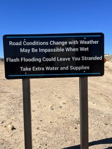 nach zwei Tagen verhungern. Dann wird die Wüste zunehmend gebirgiger, es zieht ein riesiges Gewitter auf, wir bekommen sogar per SMS eine Flutwarnung für das Gebiet das wir gerade durchfahren. So schlimm kommt’s dann