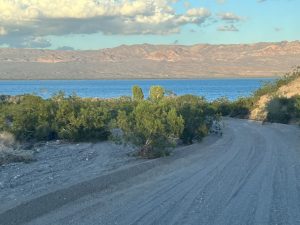 einen wunderbaren Übernachtungsplatz ganz alleine am Ufer des Mojave Stausees zu dem der Colorado River hier auf 107 km aufgestaut