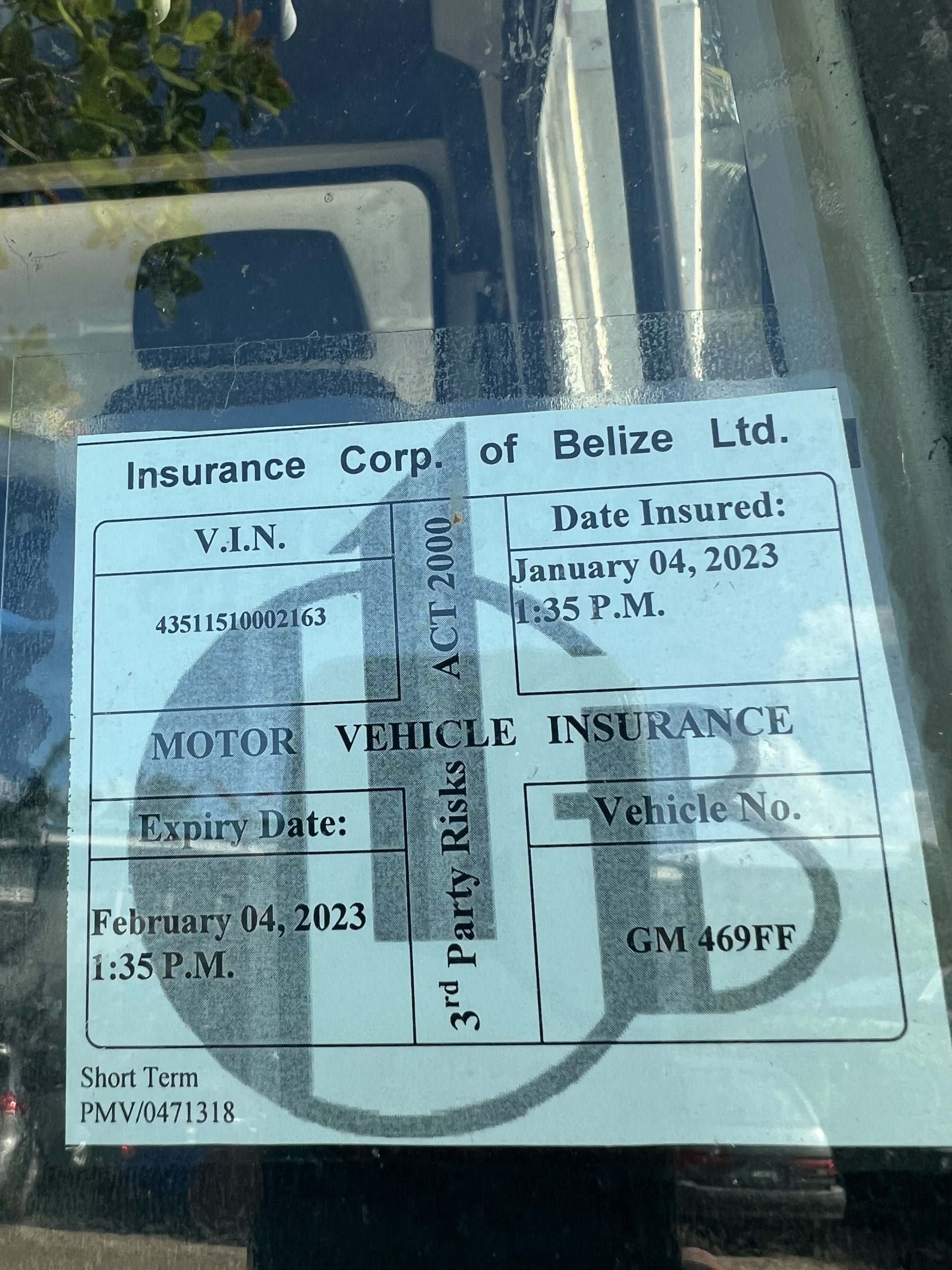 Die Grenzübertritt von Mexico nach Belize erweist sich als völlig einfach und super organisiert. In Belize gilt ja englisch als Amtssprache und obwohl mein Spanisch jetzt schon etwas passabler ist als noch vor drei Monaten, ist die ganze Verständigung bei der Zollabwicklung für das Auto halt dann doch einfacher in englisch. Alle Grenz- und Zollbeamten sind sehr freundlich und der Unimog wird außen kostenpflichtig desinfiziert (ja, wer weiß schon was man vom Nachbar Mexico alles eingeschleppt bekommen könnte,…) und temporär in Belize eingeführt. Den Großteil der frischen Lebensmittel haben wir noch vorher aufgegessen, den Rest gut versteckt aber es wird dann das Innere der Kabine gar nicht kontrolliert. Als Letztes kaufen wir uns noch eine Versicherung für den Unimog, bekommen dazu einen Aufkleber auf die Windschutzscheibe und schon ist alles erledigt.