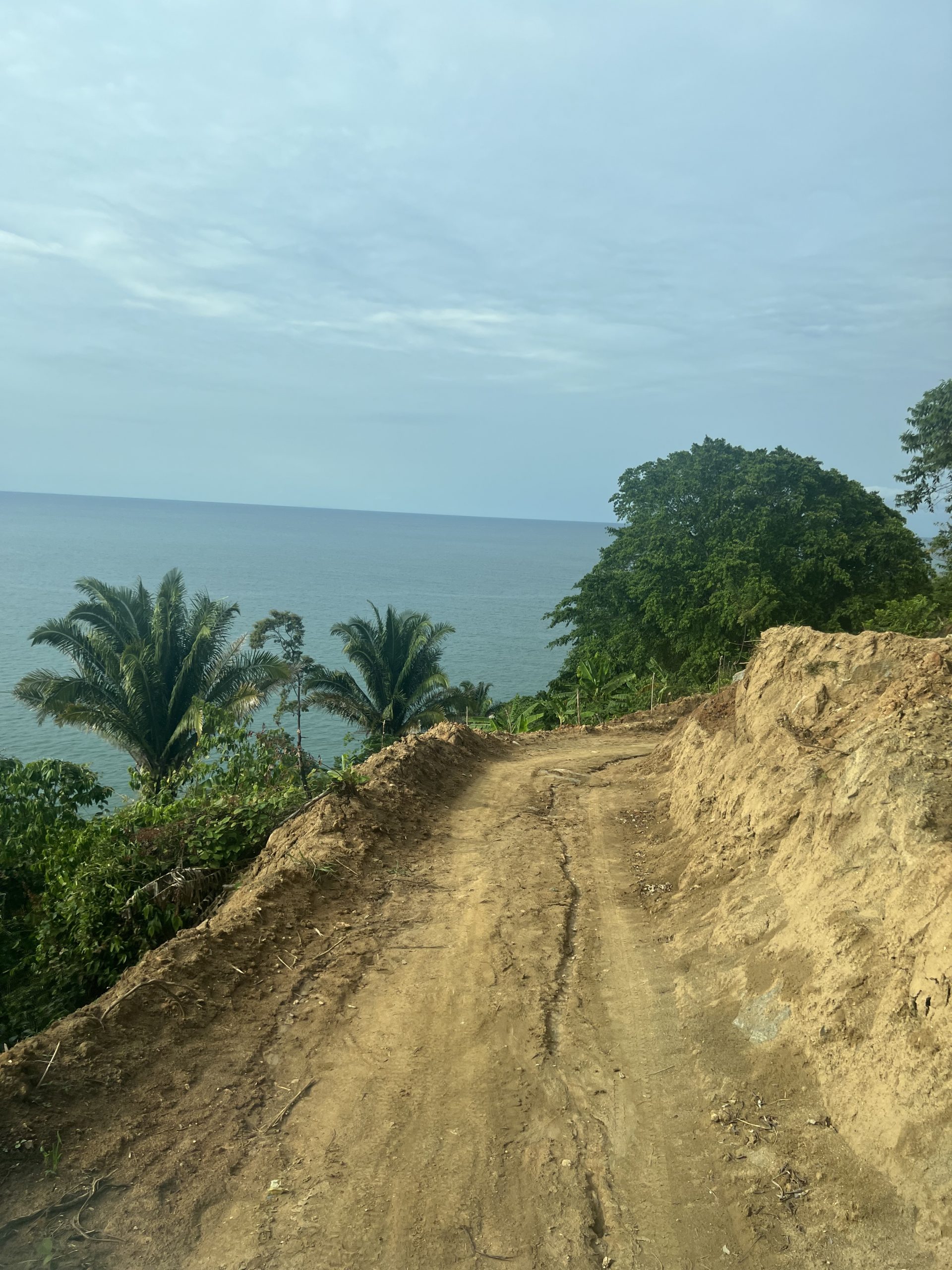 mal so breit wie der Unimog, führt abwechselnd steil bergauf mit wunderschönen Ausblicken über das karibische Meer und im nächsten Moment über roten, lehmigen, rutschigen Untergrund (es hat die ganze letzte Nacht geregnet) wieder steil bergab und hinein in den Dschungel, der uns links und rechts so nahe kommt, dass man meint es gäbe kein Durchkommen. Ich muss das Fenster schließen, weil ich sonst ständig Äste, Blätter und alle Arten von