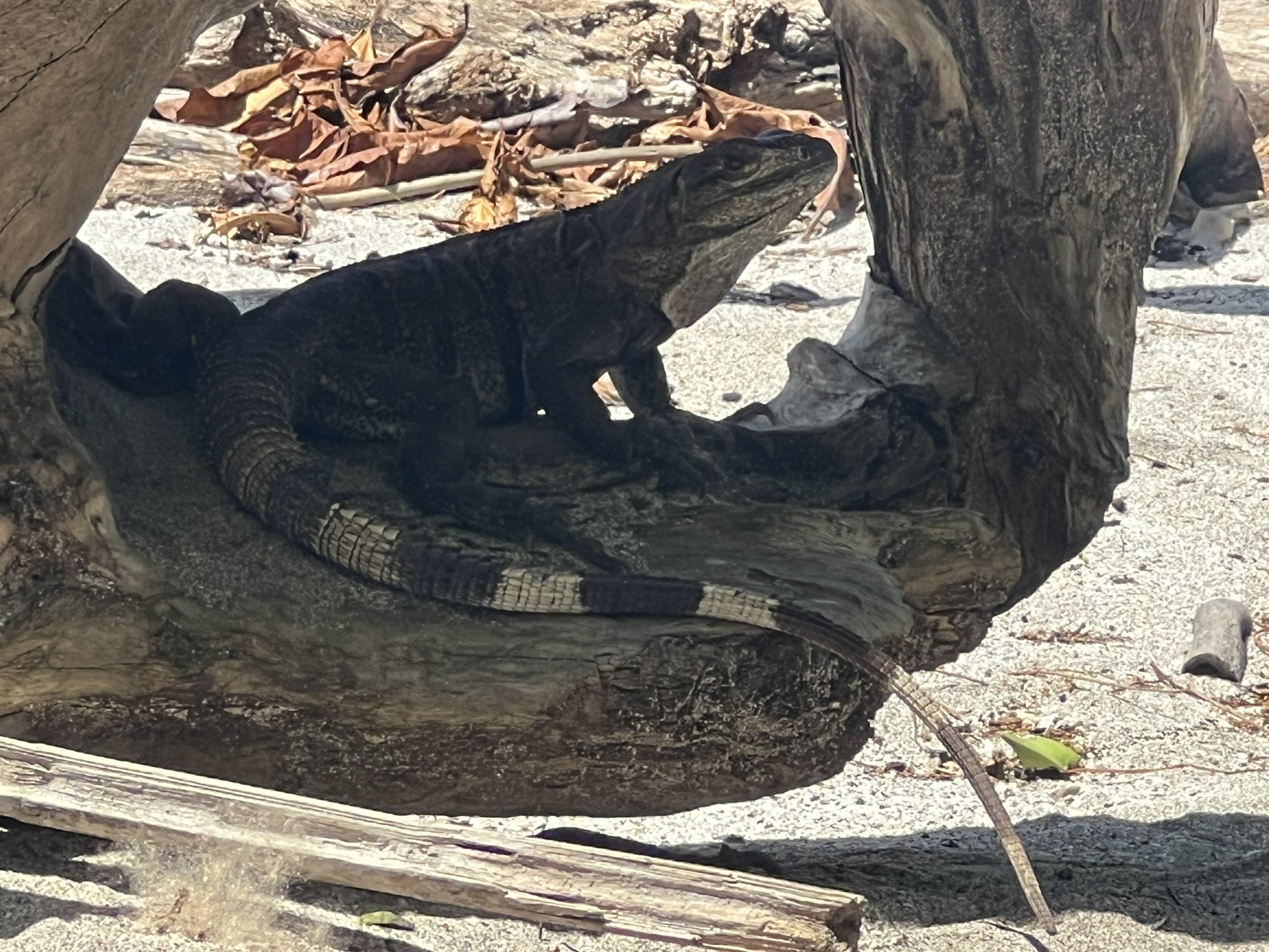 ist so wunderschön, da kann sowieso keine Terrasse mithalten. Das inzwischen lauwarme Meer nur ein paar Schritte entfernt, die riesigen Bäume spenden jede Menge Schatten, Leguane sausen zwischen uns über die angeschwemmten Baumstämme und … dass ich einen jungen Mann nur knapp noch dabei erwische, wie er mitten am Tag gerade unser Internet-Modem stehlen will, das ich zwecks besserem Empfang nach draußen gelegt habe, stört unsere Idylle auch nicht wirklich. Man muss hier, genauso wie auch überall sonst auf der Welt, einfach auf seine Sachen aufpassen, das ist eben so. Wir würden niemals irgendetwas über Nacht draußen stehen lassen, egal ob Tisch oder Campingsessel, oder Wäsche hinaushängen, etc., ich bin sicher, würden wir das tun, wäre am nächsten Morgen alles weg. Man wird überall genau beobachtet, das wissen wir längst. Sogar