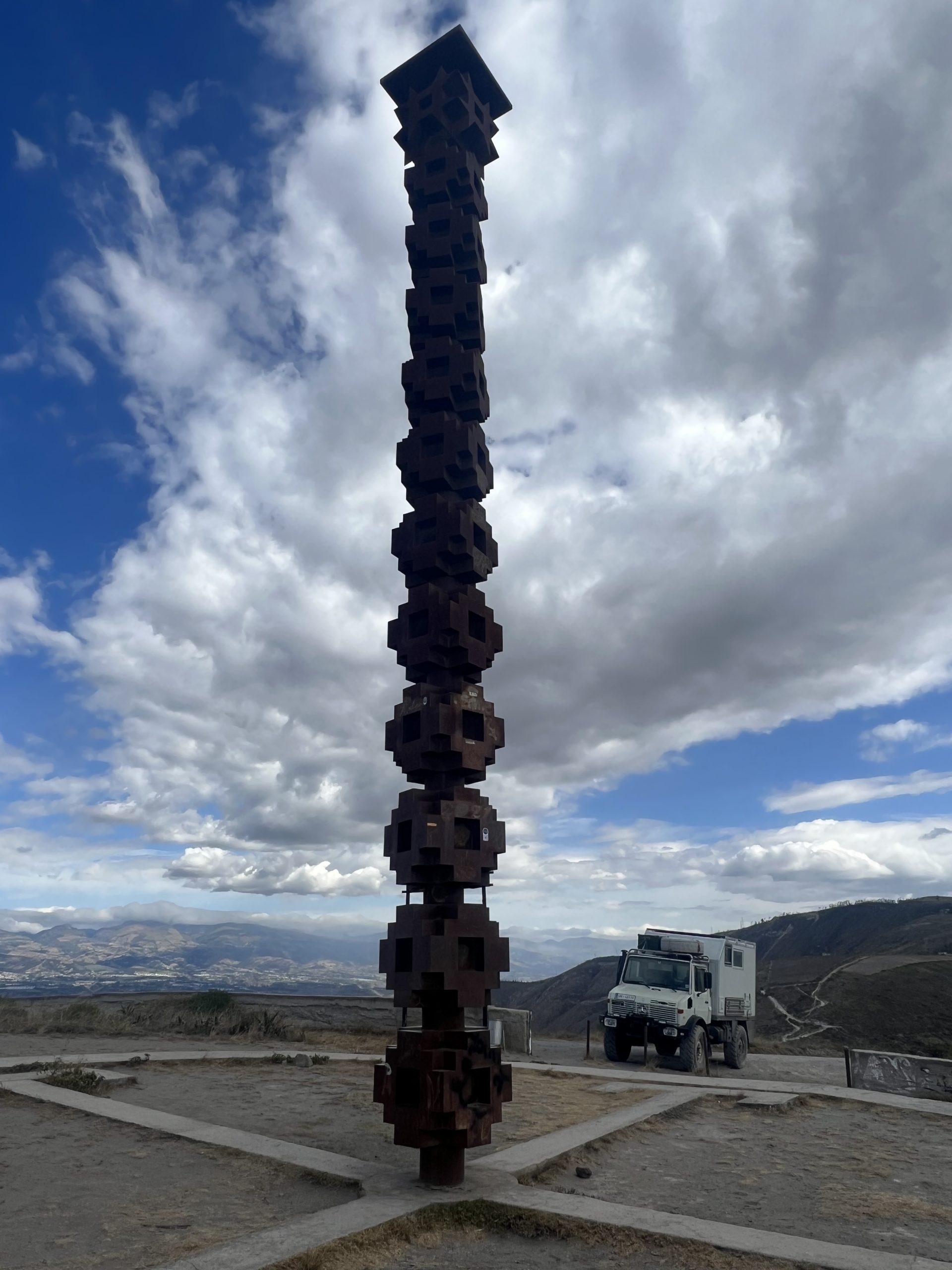 – Exakt dort springt die Kompassanzeige meines Handys auf 0°0’0″N. Es ist ein wunderbarer Platz mit einer fantastischen Rundumsicht auf die Bergwelt und hinunter auf die die Hauptstadt Quito. Wir genießen die Ruhe und die Aussicht und beschließen dann, dass dieser Augenblick auf jeden Fall gefeiert gehört und wir zudem die Nacht hier verbringen möchten. Wir parken den Unimog in der Nähe