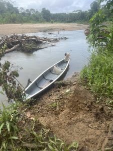 schlafe ich dann aber doch ein, klaue Karl die Wolldecke weil mir so eiskalt ist und bin dann aber echt froh als der nächste Morgen anbricht. Wir sind völlig steif vom Liegen auf dem harten Holzboden, Gaya ist frischfröhlich schon um sechs Uhr wach, es gibt Urwaldkaffee und gekochte Yuca zum Frühstück, dann verschwinden Gaya und sein Schwiegersohn in Richtung Kanu, um noch einen letzten Reparaturversuch zu starten. Falls der nicht gelingt, meint Gaya, müssten wir halt mit den beiden jungen Leuten zu Fuß nach Hause zurückmarschieren während er das Kanu wieder stromaufwärts durchs Wasser schieben würde.