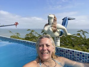 kleine Hotel „Farallon Dillon“ gebaut hat, das er mit sämtlichen in seinem Leben gesammelten und von seinem Vater, der ebenfalls schon Kapitän war, geerbten, nautischen Dingen ausgestattet hat. Es gibt sogar einen kleinen Pool von dem man, wie überhaupt von