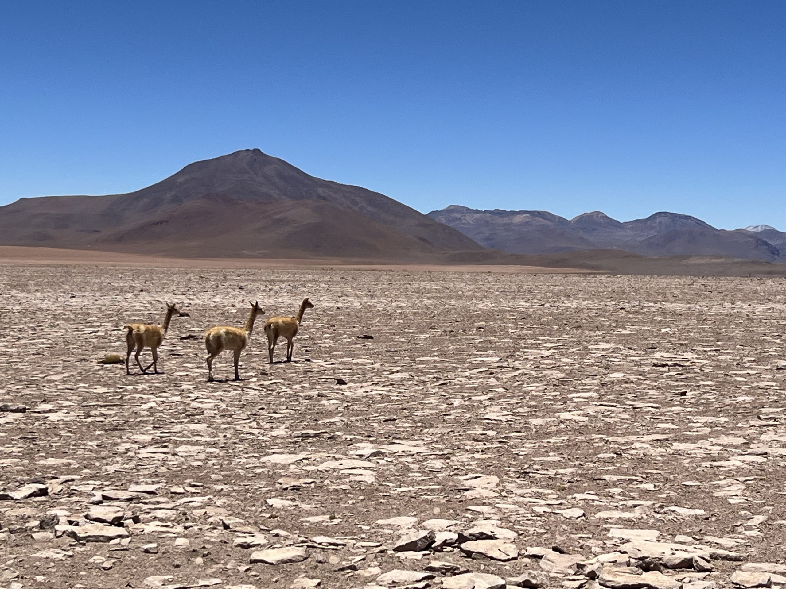 deren Felsen in Regenborgenfarben leuchten, Lagunen deren Wasser von türkis über jadegrün bis zu dunkelblau wechselt, man weiß oft nicht in welche Richtung man zuerst schauen soll. Oft sehen wir kleine Gruppen der sonst so seltenen „Vicunas“ direkt neben der Piste, die aber immer ganz schnell die Flucht ergreifen wenn wir